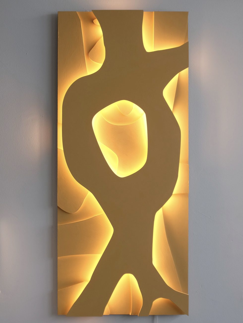 A form shaped around absence and presence, where light gathers gently along soft contours. The interplay of glow and shadow gives the piece a quiet emotional resonance.